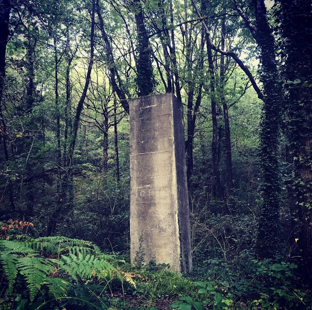 Ferns sway where gravel once lay, and trees twist around the remains of one cement pylon, standing tall like a monolithic offering to forgotten gods.